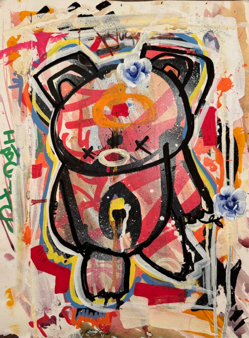 Bright, bold, and full of personality, our Cuting Bears Series brings pure joy to any space. Each 12x18 piece is painted on thick, premium watercolor paper using vibrant acrylics, blending graffiti energy with soft hand-painted florals—our signature Uptown Child style.